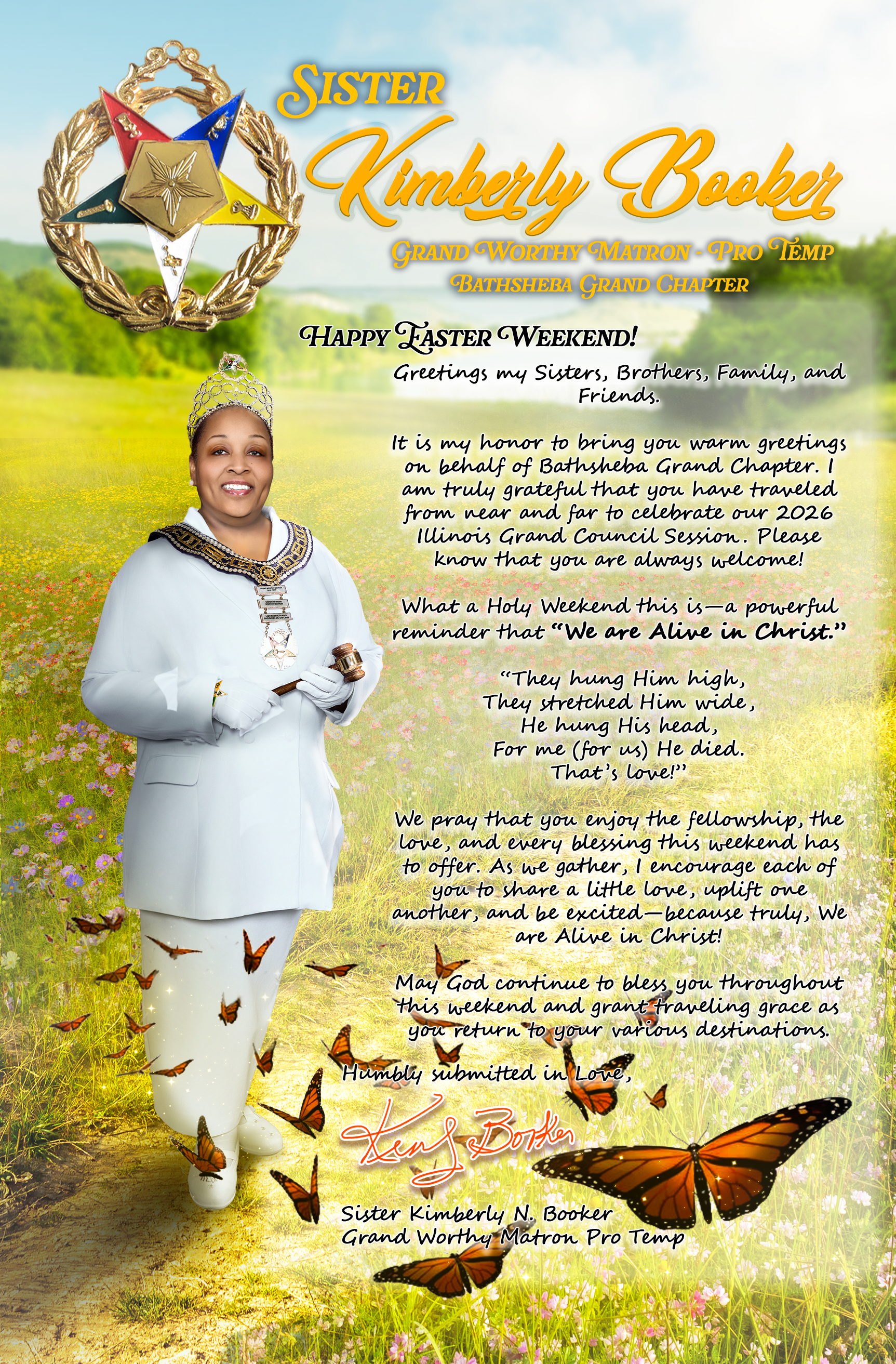 Honorary ad page for the 2026 Grand Worthy Matron of Bathsheba Grand Chapter.